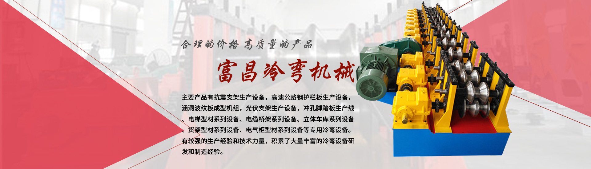 主要產(chǎn)品有抗震支架生產(chǎn)設(shè)備,高速公路鋼護(hù)欄板生產(chǎn)設(shè)備,涵洞波紋板成型機(jī)組,光伏支架生產(chǎn)設(shè)備,沖孔腳踏板生產(chǎn)線、電梯型材系列設(shè)備、電纜橋架系列設(shè)備、立體車庫系列設(shè)備、貨架型材系列設(shè)備、電氣柜型材系列設(shè)備等專用冷彎設(shè)備。有較強(qiáng)的生產(chǎn)經(jīng)驗(yàn)和技術(shù)力量,積累了大量豐富的冷彎設(shè)備研發(fā)和制造經(jīng)驗(yàn)。